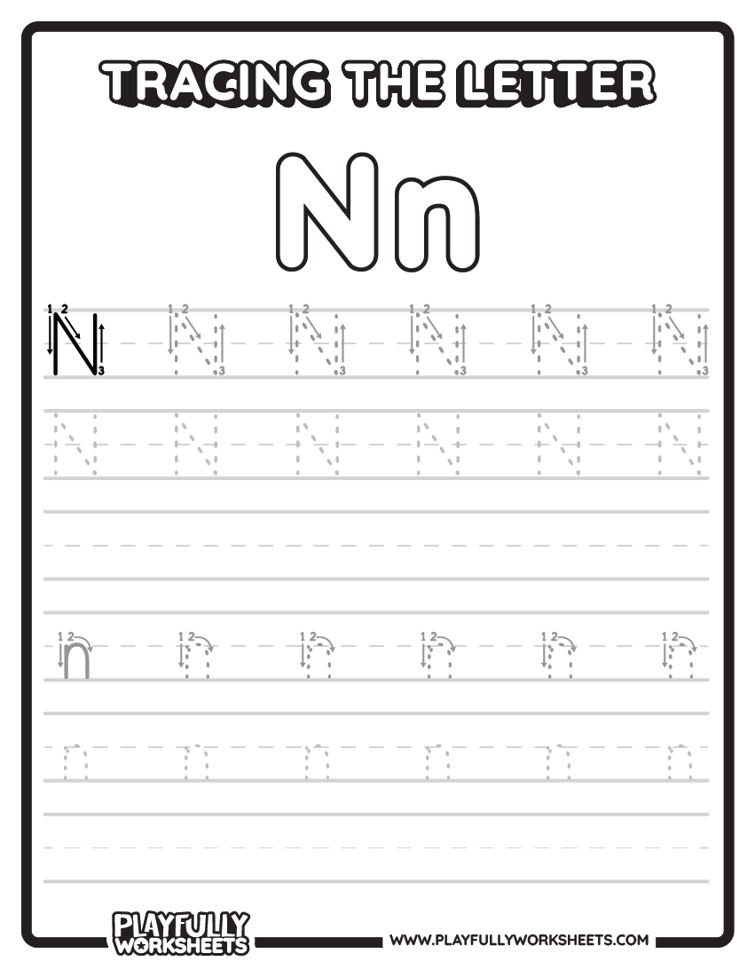 Working with letter N worksheets for preschool develops focus, coordination, and sound recognition. Tracing and coloring help children strengthen their hand muscles while reinforcing letter identification. Using free printable alphabet worksheets allows children to practice repeatedly, boosting confidence and supporting early reading skills. These activities help children connect letters to sounds and words, fostering strong foundations for future literacy success.