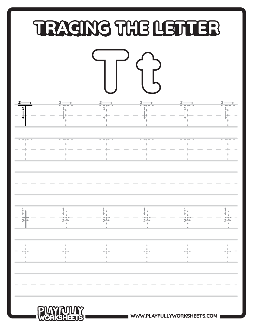 Take on Letter T with our focused alphabet tracing pages! These trace letters sheets provide clear guidance. Therefore, regular engagement with these traceable alphabet letters helps develop consistent handwriting.