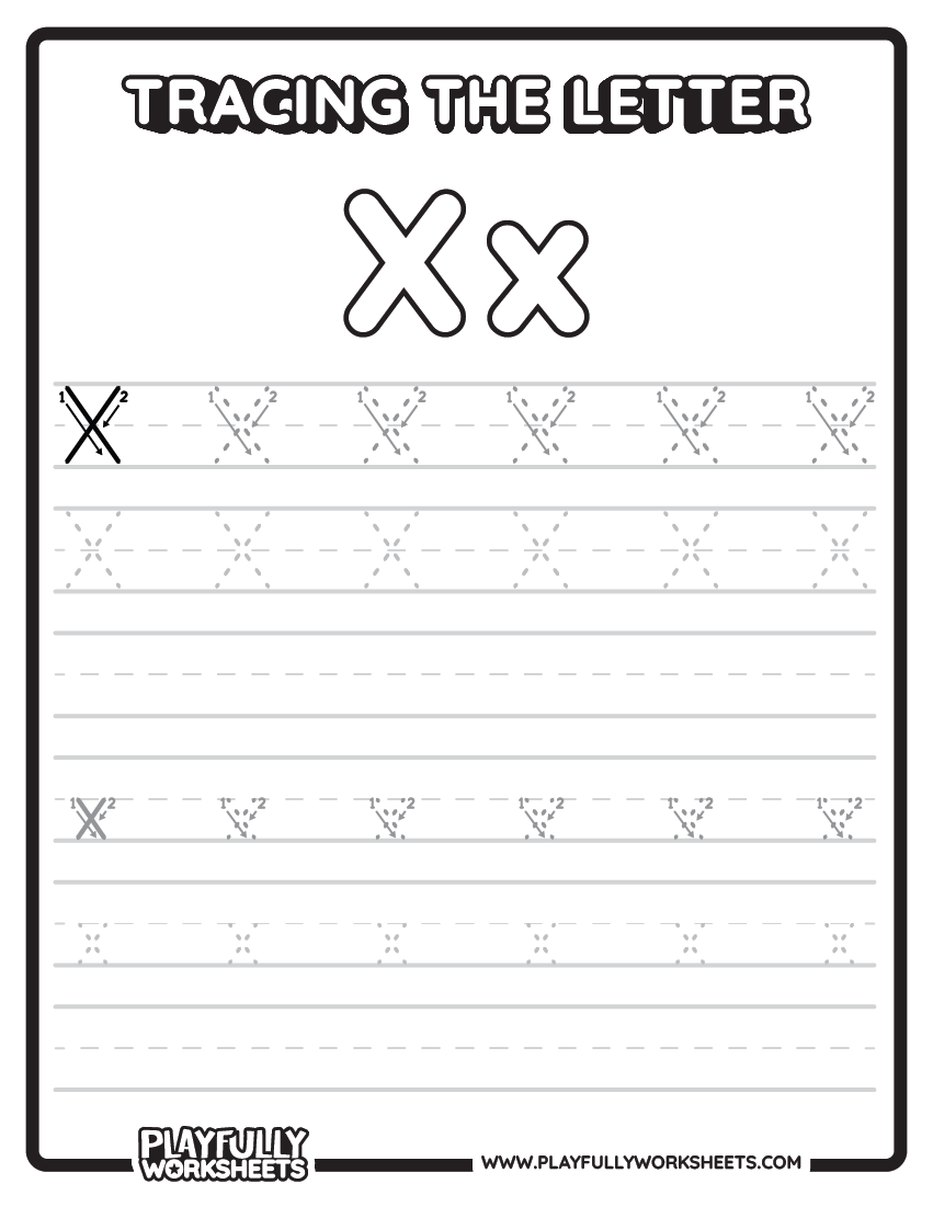 With alphabet tracing worksheets, children practice uppercase and lowercase X, improving precision and control. Tracing encourages hand-eye coordination and strengthens the muscles needed for writing.